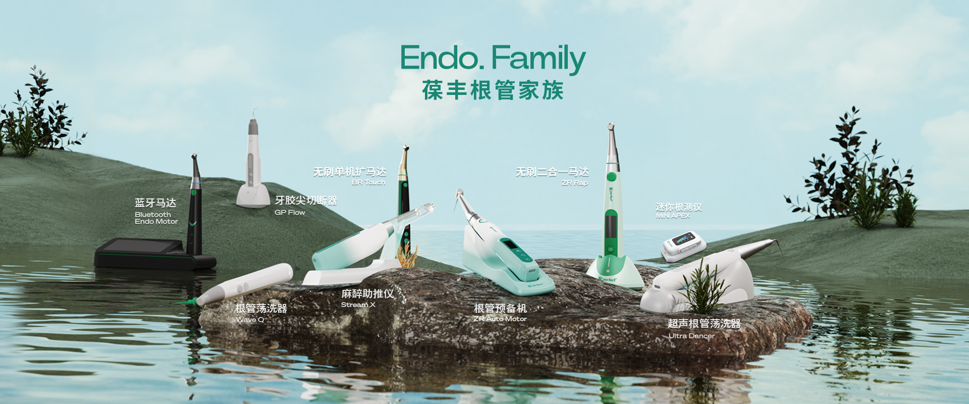 電子產(chǎn)品:根管預(yù)備機;根管測量儀;根管蕩洗器;熱熔牙膠充填系統(tǒng);無線便攜式麻醉儀;生物陶瓷治療輔助工具。